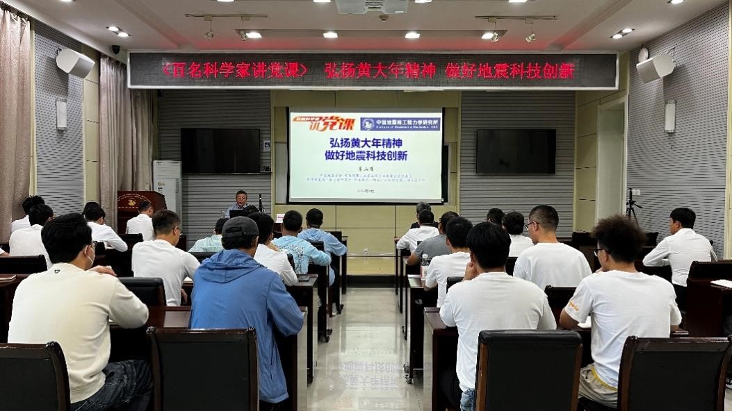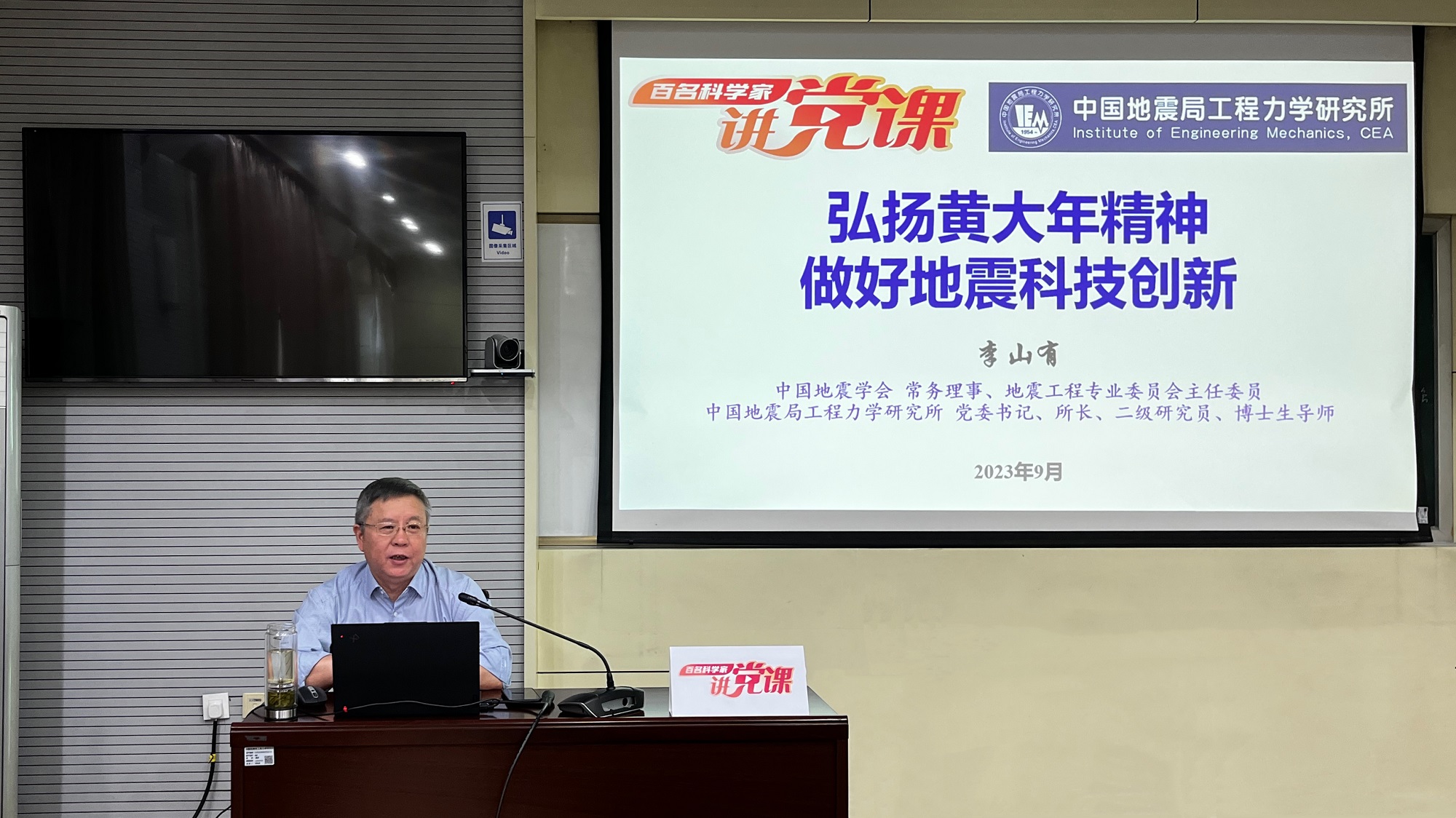 發布時間: 2023-09-15 點擊數量:9702為有效發揮中國科協黨校全國學會分校政治引領“主陣地”、黨性錘煉“大熔爐”作用,中國科協科技社團黨委組織開展了“百名科學家講黨課”活動。受中國地震學會邀請,9月14日,中國地震學會常務理事、地震工程專業委員會主任委員,我所黨委書記、所長李山有同志以《弘揚黃大年精神 做好地震科技創新》為題為所辦計財黨支部、工程地震研究中心黨支部及碩士研究生第二黨支部講授專題黨課。