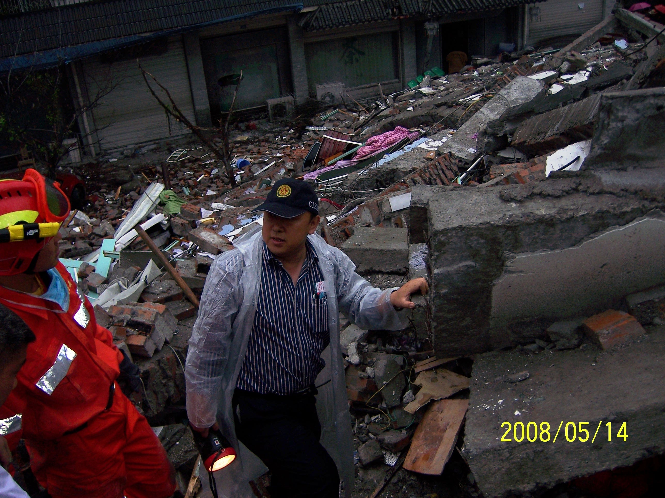 孫柏濤(右)在汶川地震現場