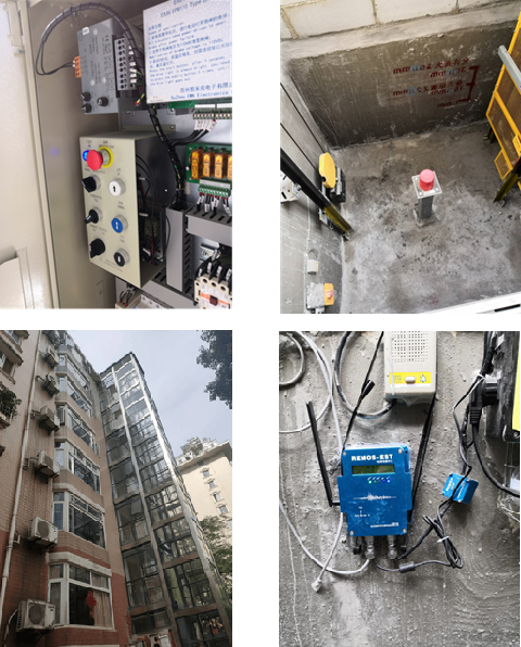 圖5 項目研發(fā)的電梯緊急地震開關及其在武漢尚隆地球村進行示范應用情況
