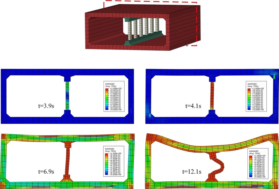 該成果發(fā)表在國(guó)際權(quán)威期刊《Tunnelling and Underground Space Technology》(Rui Dong, Liping Jing *, Yongqiang Li, Zhiyong Yin, Gang Wang, Kunpeng Xu. Seismic deformation mode transformation of rectangular underground structure caused by component failure, 2020, 98: 103298)(IF:4.450,*通訊作者)。